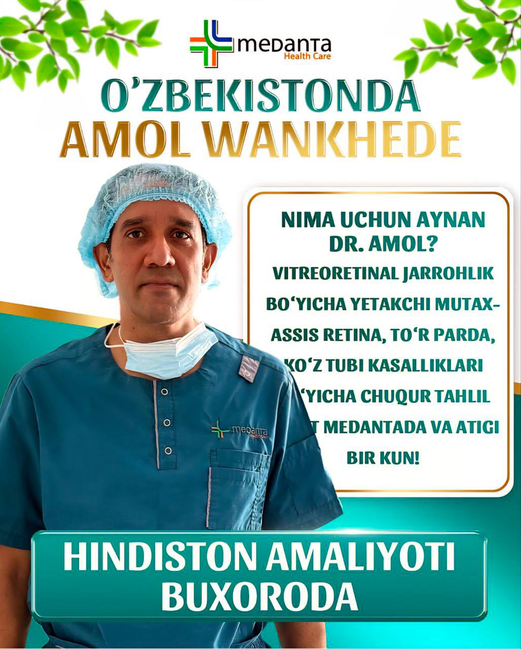 Кўздаги мураккаб жарроҳлик амалиётларни ўтказиш мақсадида Ҳи...