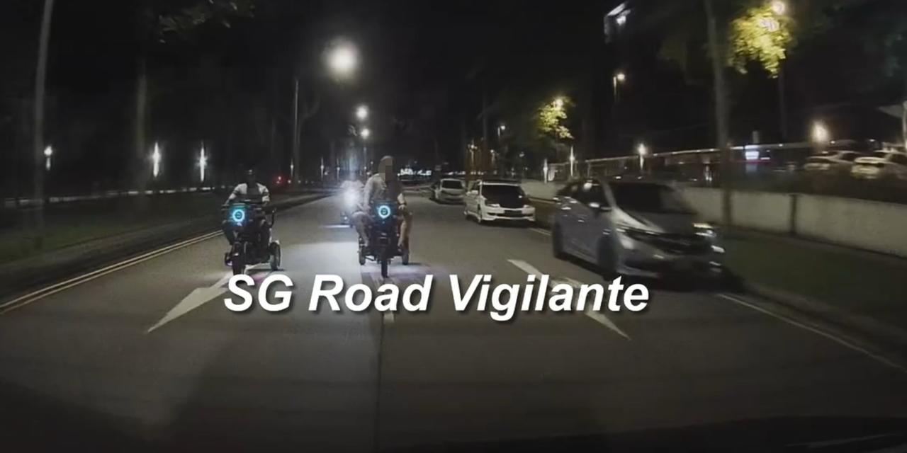 3 PMD riders cruise down Woodlands road, 1 overtakes car goi...